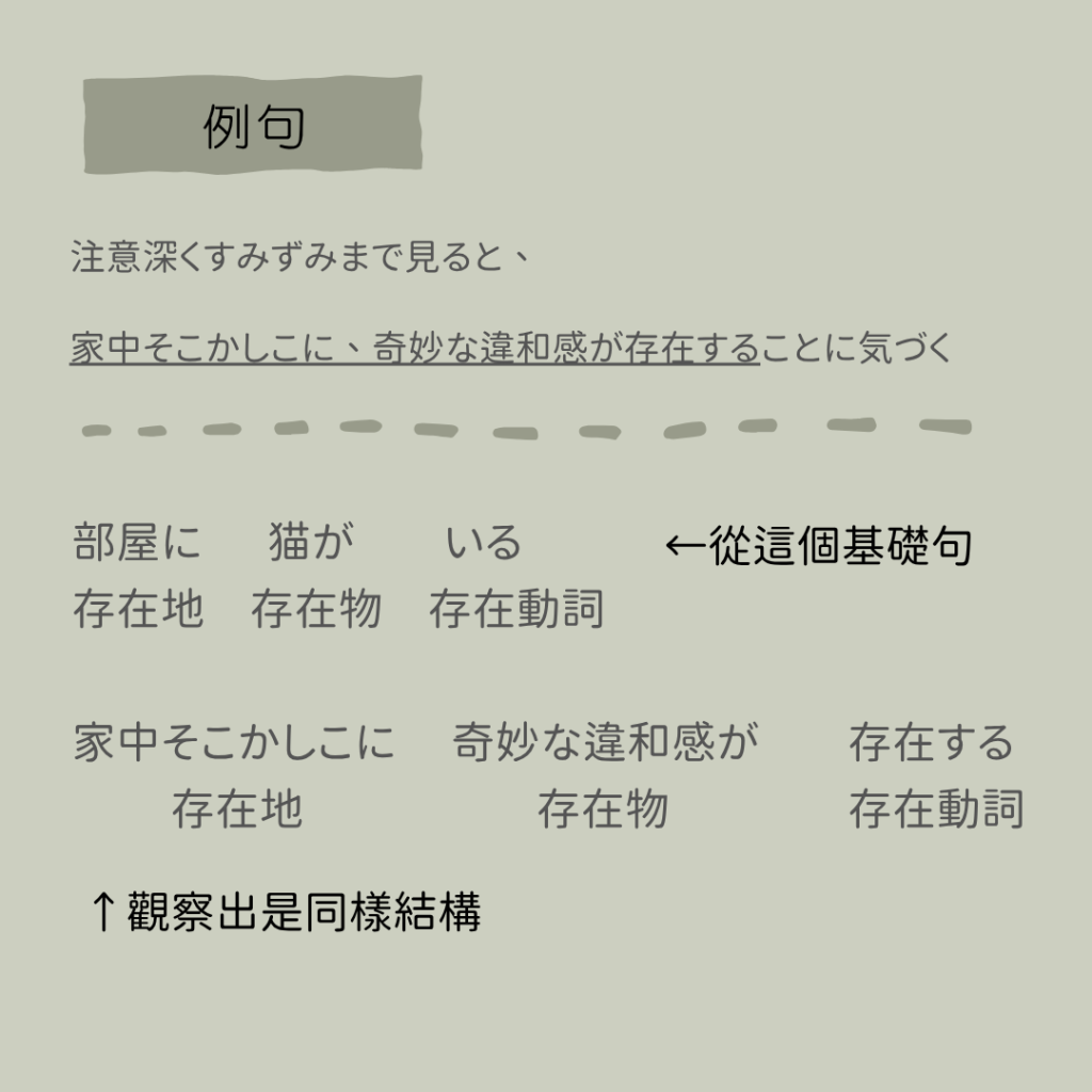 像是下面這句話(節錄自N3小說班〈変な家〉)