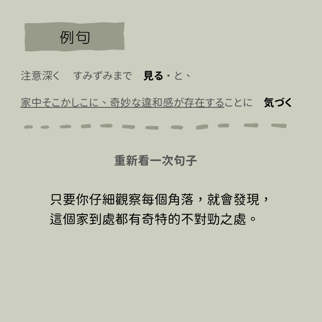 再搭配結尾“気づく”