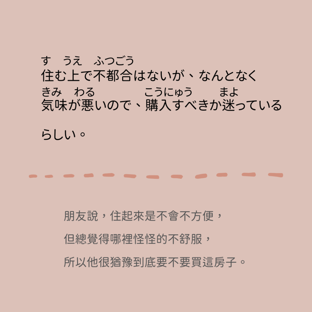 朋友說,住起來是不會不方便,但總覺得哪裡怪怪的不舒服,所以他很猶豫到底要不要買這房子