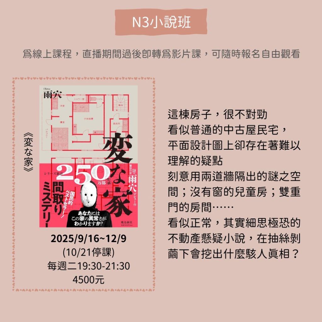 這是9/16即將開課的新N3小說班
