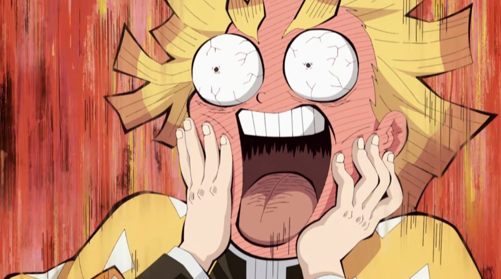 在發現禰󠄀豆子會說話後,善逸激動到整個人都變孟克的吶喊了